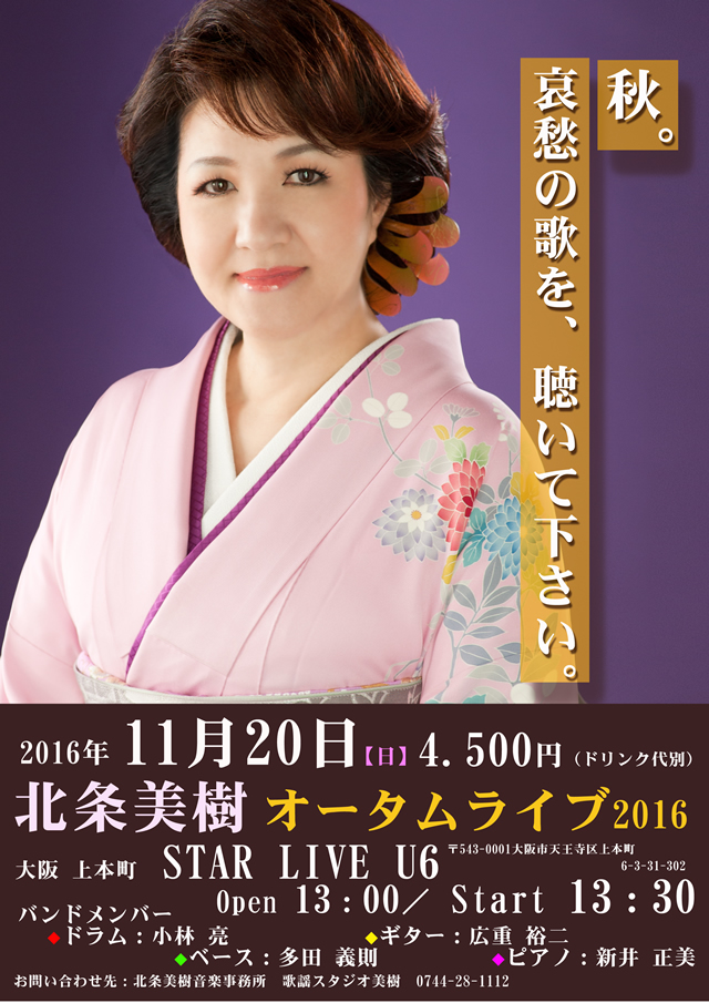11月20日(日)上本町STAR LIVE U6にてオータムライブ2016を開催いたします。